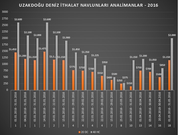 Tabloda da görüleceği üzere yılın ilk haftalarından itibaren düşüş trendi içerisinde olan navlunlar Nisan ayı ile birlikte bir miktar artış göstermektedir.
