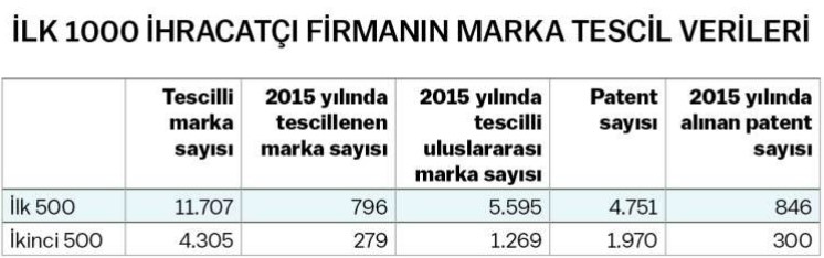 İlk 500 firmanın 2015 yılında tescillenen uluslararası marka sayısı 4.751 oldu. İkinci 500 firma ise 1.269 uluslararası marka tescili yaptı.